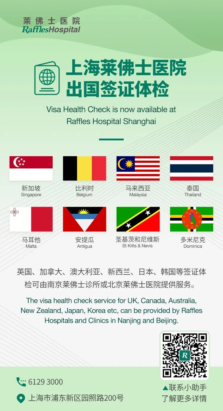 مستشفى رافلز شانغهاي يقدم خدمات الفحص الطبي للتأشيرات للمتقدمين الراغبين بالسفر إلى الدول التالية: