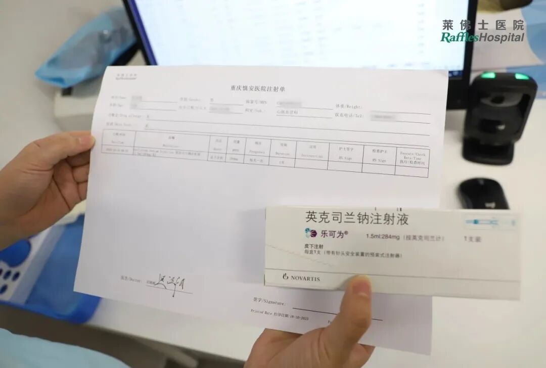 10月18日,重庆莱佛士医院心脑血管科主任迟路湘教授开出首张英克司兰处方单,并在重庆莱佛士医院完成首针注射!