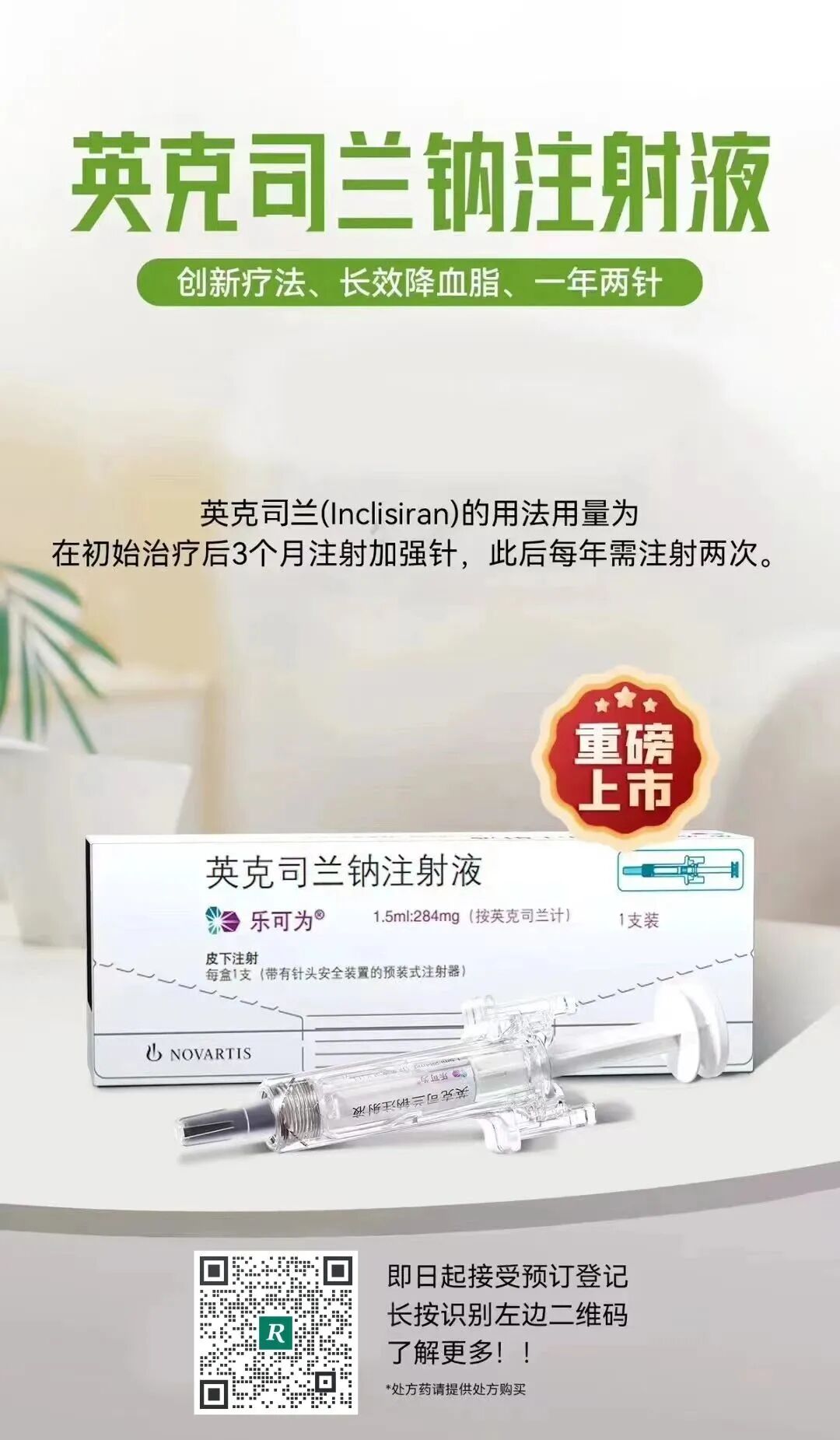 2023-10-20近日,全球首创小干扰RNA(siRNA)降胆固醇药物乐可为®(英克司兰)在我国获批上市,正式在国内开打。一年只需两针,帮助患者强效持久降低LDL-C水平,轻松达标,开启降血脂管理新纪元。